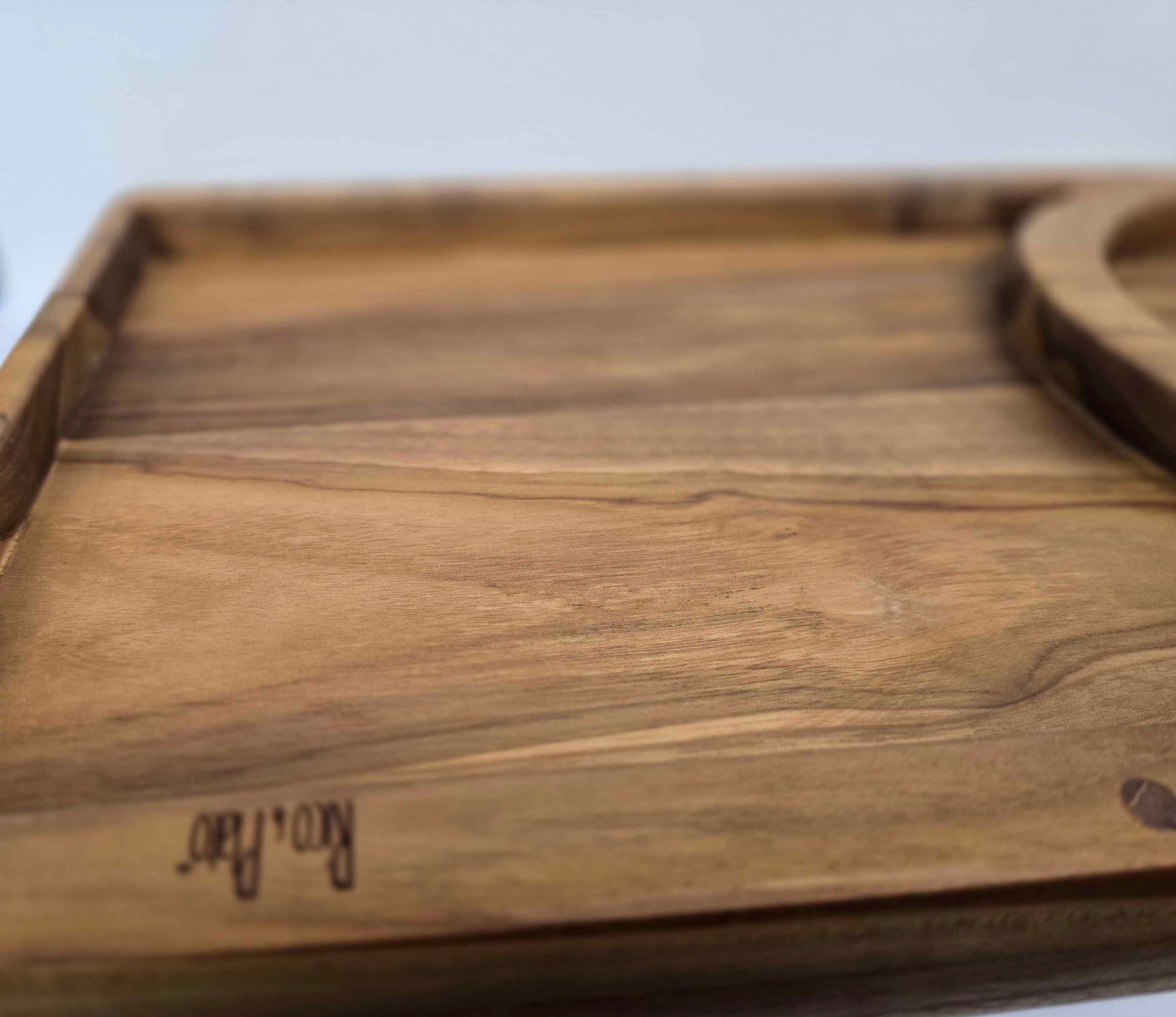 Bring efficiency and elegance to your kitchen with the Tarragon Teak Cutting Board – where smart design meets timeless craftsmanship.